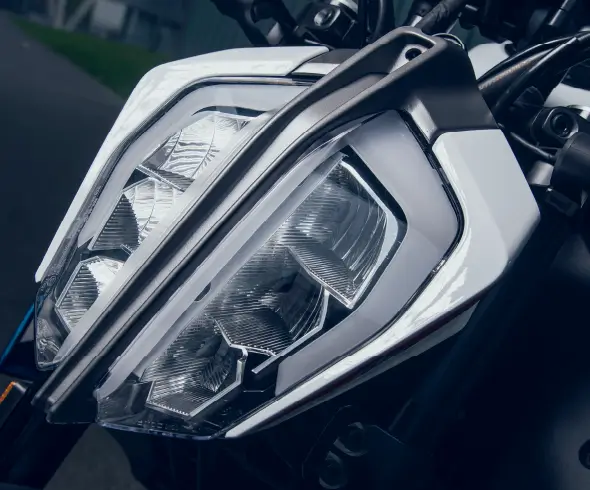 One look at the twin LED headlights on the KTM 160 DUKE and you're hooked — aggressive, distinctive, and built to dominate. Plus, they deliver optimum visibility to match that full-offensive stance.
